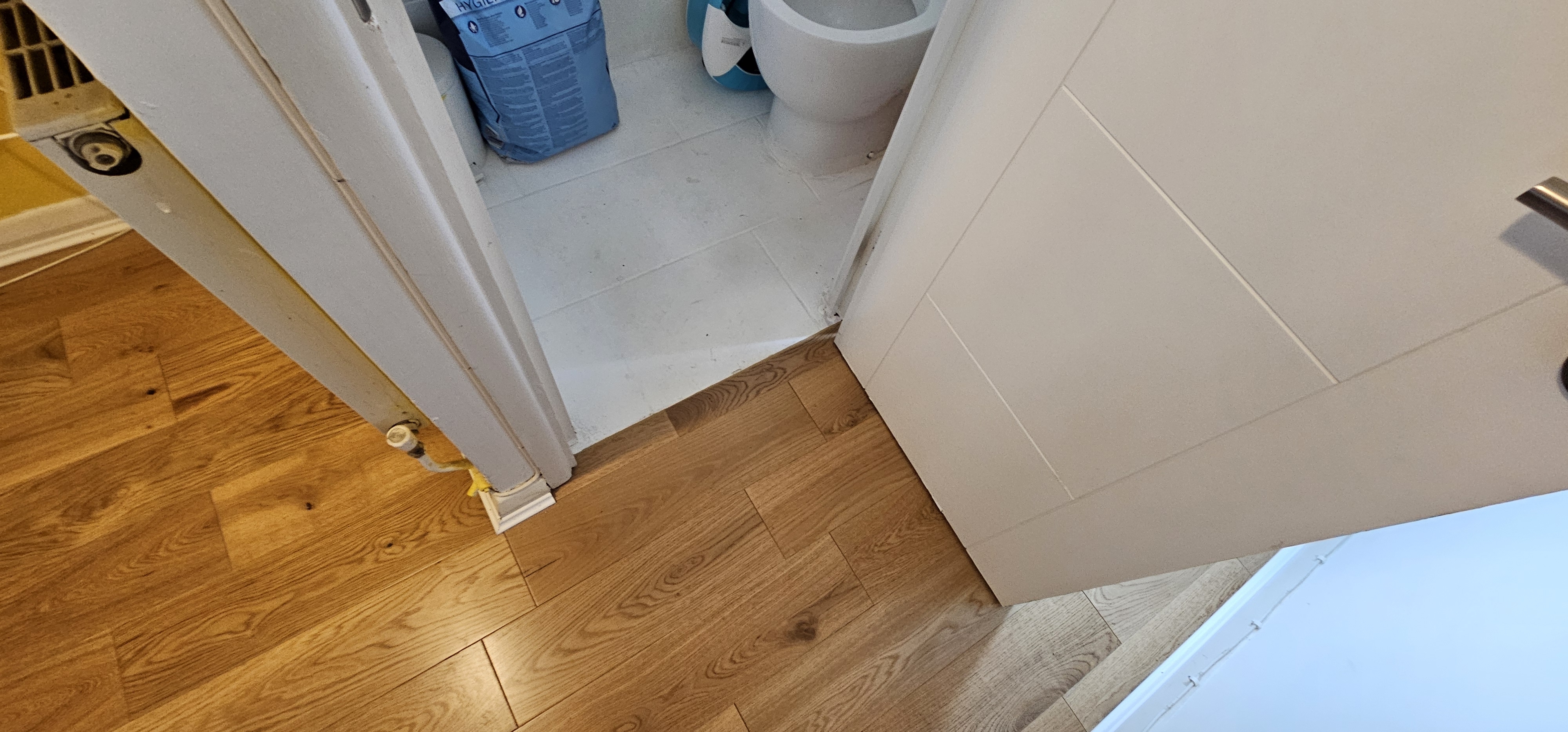 Engineered flooring installed throughout the ground floor of an Edwardian semi in Cricklewood, NW2. We removed the existing hardwood flooring, fitted new engineered boards with beading and thresholds, and completed the job with edge trimming for a clean finish.